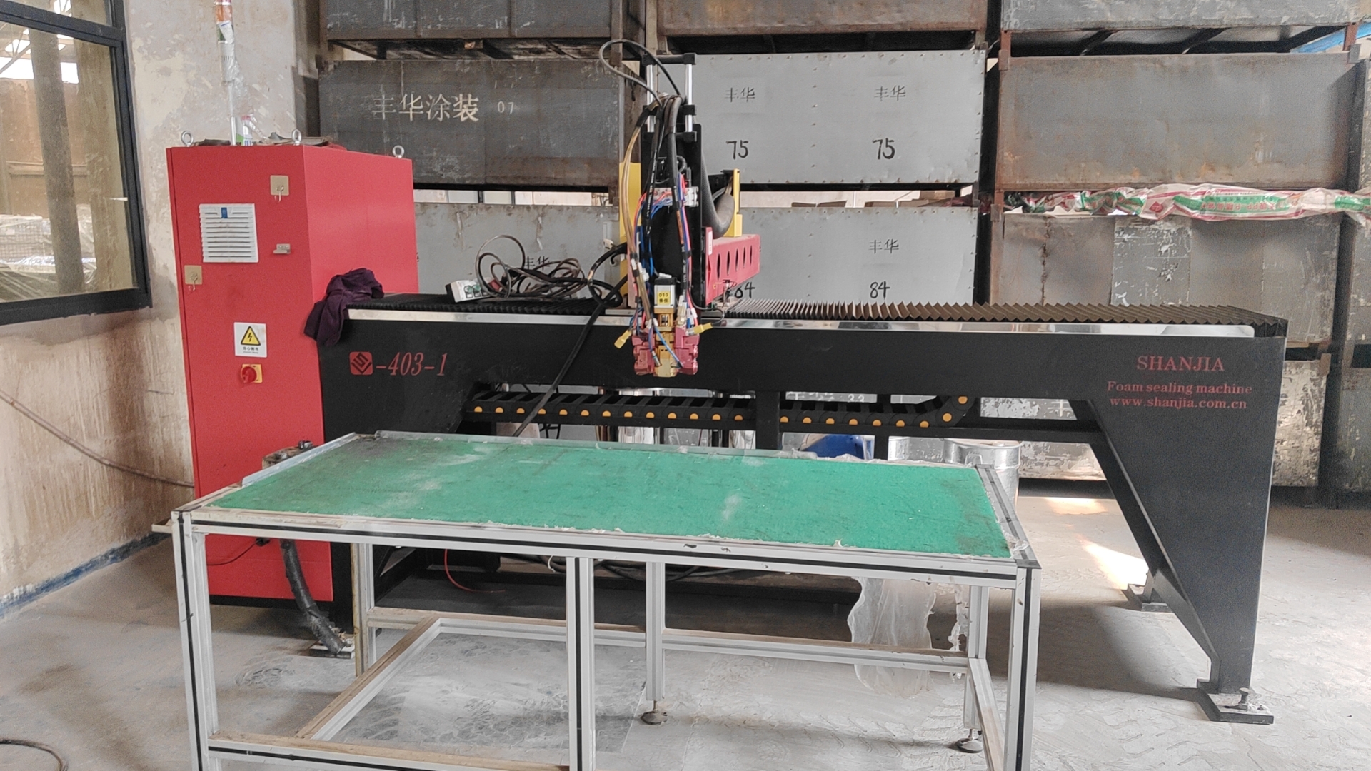設(shè)備特點(diǎn):機(jī)柜密封涂膠機(jī)應(yīng)具備自動點(diǎn)膠、圖形可調(diào)、用戶可使用手操器控制等特點(diǎn)。圖形可調(diào)范圍應(yīng)滿足機(jī)柜密封條涂膠的需求,用戶可根據(jù)實(shí)際需求定制。