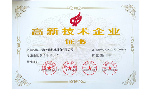 2017年11月23日,經(jīng)上海市科學(xué)技術(shù)委員會(huì)、上海市財(cái)政局、上海市國(guó)家稅務(wù)局、上海市地方稅務(wù)局批準(zhǔn)我司第二次榮獲高新技術(shù)企業(yè)證書(shū)。